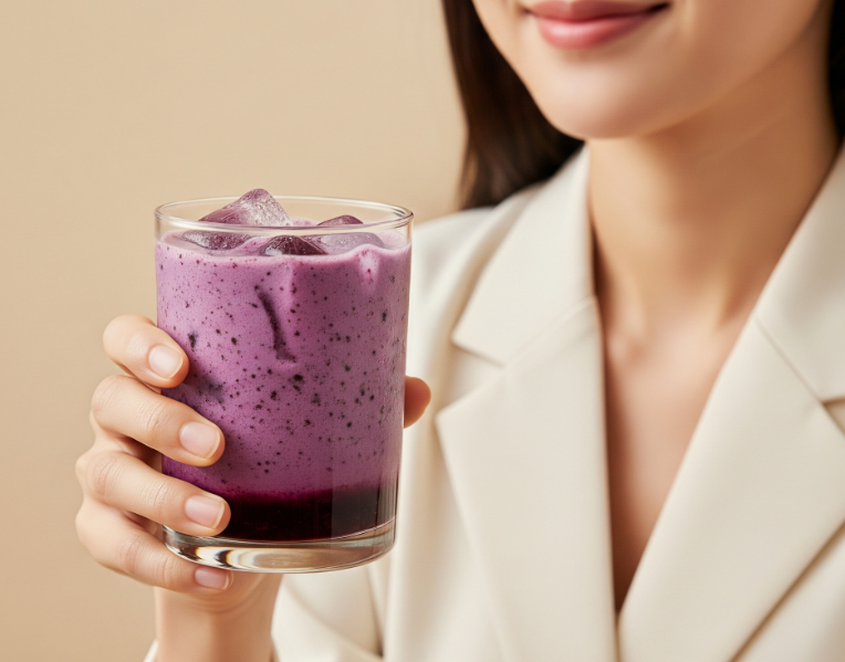블루베리 스무디: 냉동 블루베리, 우유(또는 요거트), 바나나 등을 넣고 갈아주면 최고의 스무디가 완성돼요.