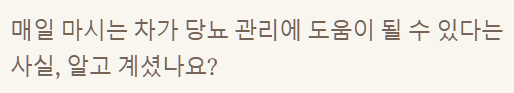 - 혈당 모니터링! 새로운 차를 마실 땐 혈당 변화를 꼭 기록하세요.