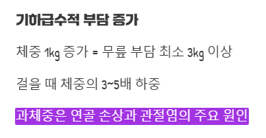 체중이 1kg 늘면 무릎에는 최소 3kg 이상의 부담이 더해진다는 사실!