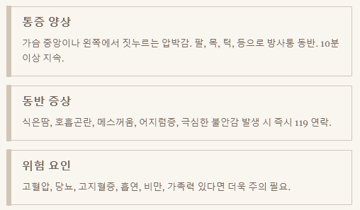 ⚠️ 주의하세요!: 스스로 판단하여 시간을 지체하는 것은 매우 위험할 수 있습니다. 특히 심장이나 폐와 관련된 질환은 초기 대응이 생명을 좌우할 수 있으니, 의심스러운 증상이 있다면 망설이지 말고 전문가와 상담하세요.
