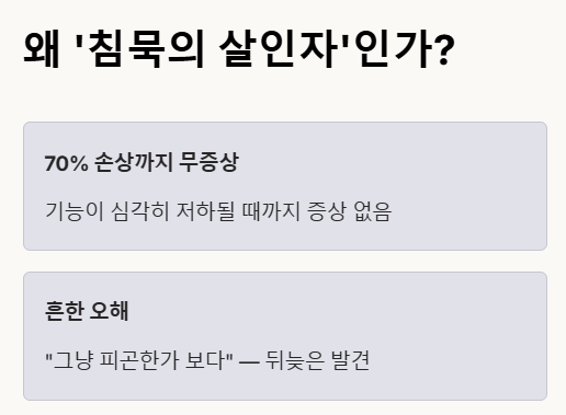 이런 이유로 간경화는 '침묵의 살인자'라고도 불립니다.