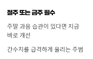 • 금주 또는 절주: 간 건강을 위해서는 가장 기본적이면서도 강력한 방법입니다.