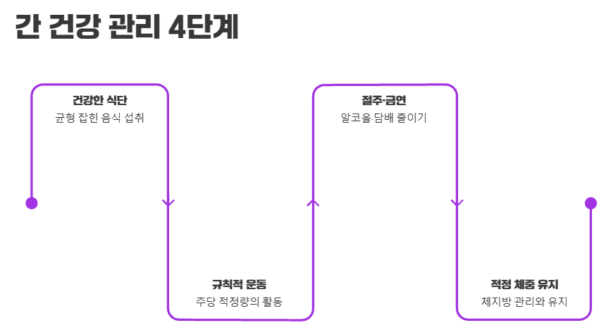 4. 건강한 식습관, 규칙적 운동, 절주/금연, 적정 체중 유지가 간 건강의 핵심입니다.