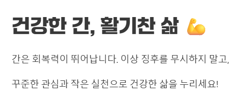 간은 회복력이 뛰어나지만, 꾸준한 관심과 관리가 중요해요. 이상 징후를 무시하지 말고 적극적으로 대처하여 활기찬 삶을 누리세요.
