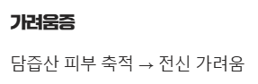 황달과 함께 나타날 수 있는 증상으로, 담즙산이 제대로 배출되지 못하고 피부에 축적되어 전신 가려움증을 유발할 수 있습니다.