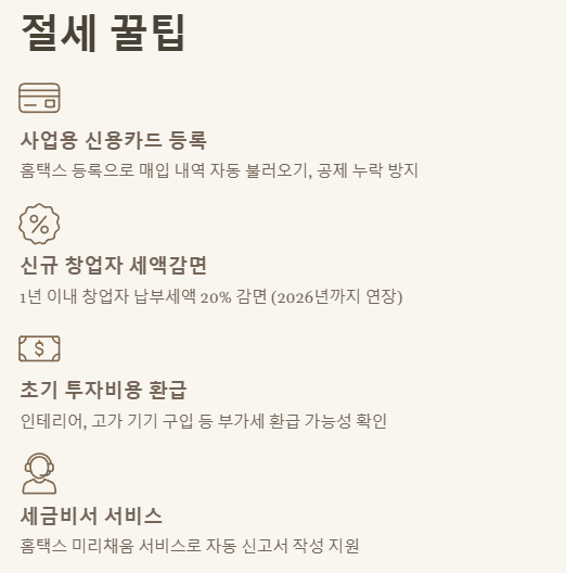 - 사업용 신용카드 등록, 신규 창업 감면 등 절세 꿀팁 꼭 활용하세요!