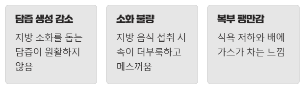 그런데 간 기능이 저하되면 담즙 생성이 원활하지 않아 소화 불량, 특히 지방이 많은 음식을 먹었을 때 속이 더부룩하거나 메스꺼움을 느낄 수 있습니다.