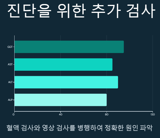 - ✔ 정확한 진단을 위해선 다른 간 기능 검사와 영상 검사를 병행하는 것이 필수적입니다.