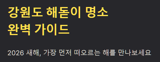 차가운 겨울 공기 속에서 해를 기다리던 순간, 동해 수평선 위로 붉게 타오르며 솟아오르는 태양을 마주할 때의 그 벅찬 감동이란… 솔직히 말하면, 이건 직접 경험해봐야만 알 수 있는 마법 같은 순간이죠. 특히 강원도는 이런 황홀한 일출을 만끽하기에 더할 나위 없이 완벽한 장소인데요. 오늘은 2025년 한 해를 마무리하거나 다가오는 2026년을 힘차게 맞이하고 싶은 분들을 위해, 제가 직접 가보고 감동했던 강원도 해돋이 명소들을 좀 더 생생하고 인간적인 시각으로 추천해 드리려고 해요. 단순히 경치만 좋은 곳이 아니라, 그곳에서 느낄 수 있는 특별한 분위기와 잊지 못할 추억까지 함께 담아보려 노력했습니다. 아, 물론 방문 팁도 놓치지 않을 거예요!