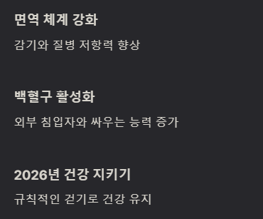 ✅ 뼈와 근육을 튼튼하게 만들고 면역력을 증진시켜 질병 예방에 기여합니다.