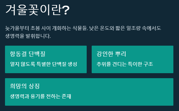 • 겨울꽃은 극한 환경 속 강인한 생명력과 희망을 상징합니다.