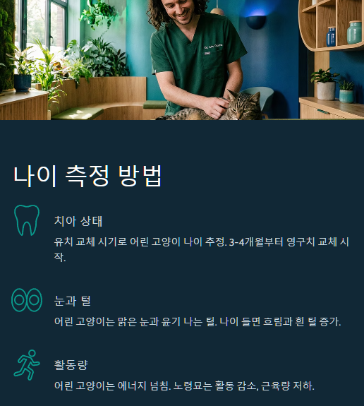 - 고양이 나이는 초기 2년이 급격히 성장하며, 그 후 매년 사람 나이 4년씩 추가되는 것이 일반적이에요.