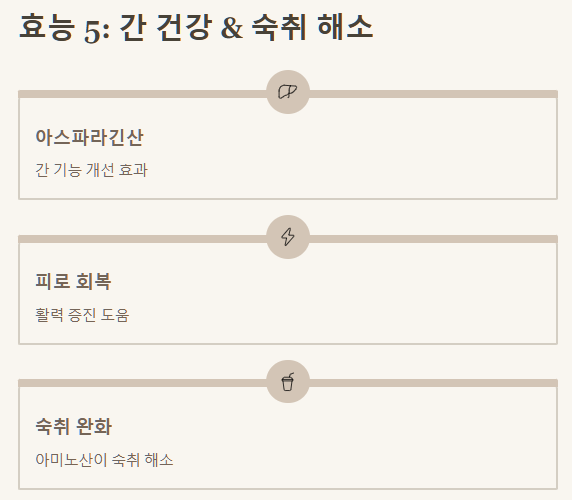 | 아스파라긴산 | 피로회복, 간 기능 개선 |