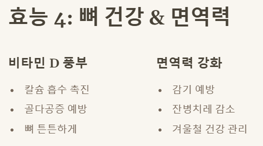 4. 뼈 건강 및 면역력 강화