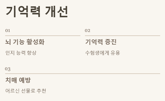 마지막으로, 구기자는 뇌 건강에도 긍정적인 영향을 미칩니다. 뇌 기능을 활성화하고 기억력 및 인지 능력 개선에 도움을 줄 수 있다고 알려져 있어, 수험생이나 치매 예방에 관심 있는 분들에게 특히 유용할 수 있습니다. 어르신들 선물로도 정말 좋을 것 같아요.