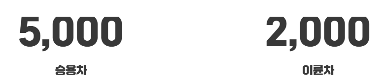 승용차는 5,000원, 대형버스는 10,000원, 이륜차는 2,000원이에요.