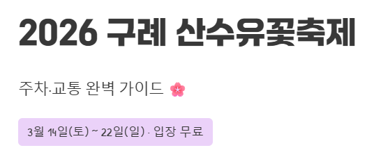 이번 2026 구례 산수유꽃축제는 제가 알려드린 주차 및 교통 정보를 참고하셔서 꼭 즐겁고 편안하게 다녀오시길 바랍니다.