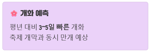 A4: 2026년은 평년 대비 개화가 3~5일 빨라질 것으로 예상되어,