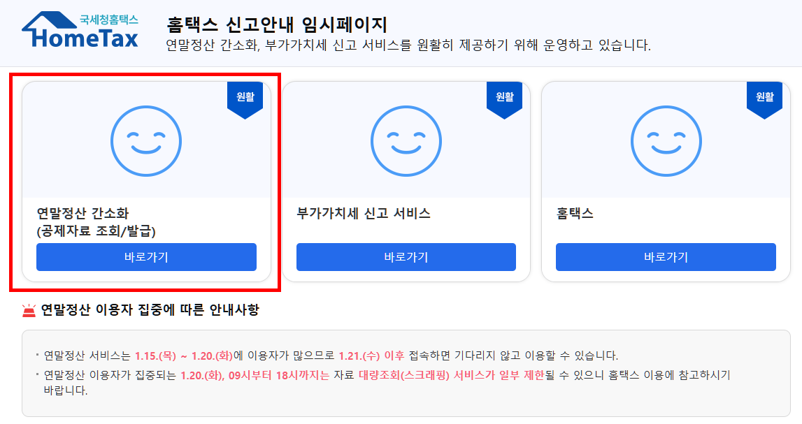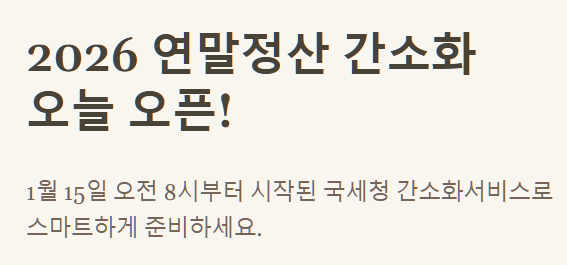 - ✅ 2026년 1월 15일 오늘 오전 8시, 연말정산 간소화서비스가 개통되었습니다.