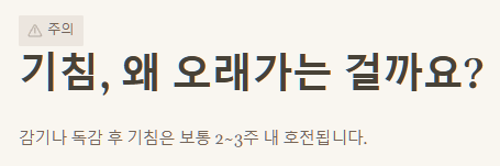 하지만 3주 이상 지속되는 기침은 '만성 기침'으로 분류되며, 이때는 다른 원인을 의심해봐야 합니다.