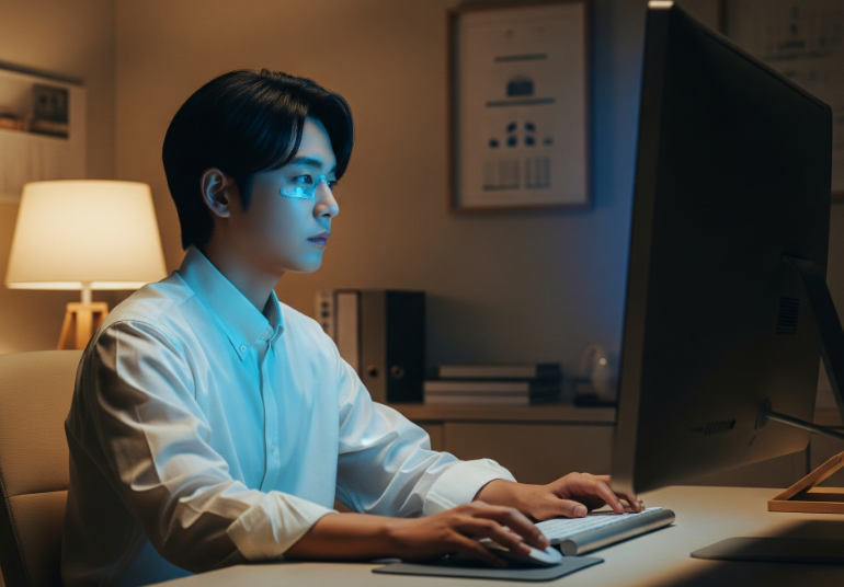 컴퓨터나 스마트폰을 사용할 때는 20-20-20 규칙(20분마다 20초씩 20피트(약 6미터) 멀리 바라보기)을 실천하고, 따뜻한 물수건으로 눈 찜질을 해주는 것도 도움이 됩니다. 인공눈물을 사용해 안구 건조증을 완화하는 것도 잊지 마세요.