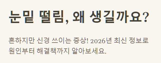 눈밑 떨림, 흔하지만 신경 쓰이는 이 증상! 2026년 최신 정보로 원인부터 해결책, 그리고 병원 방문이 필요한 순간까지 자세히 알아보세요. 당신의 눈 건강을 위한 필수 가이드입니다.