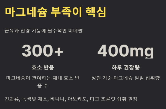 💊 영양소 불균형, 특히 마그네슘 부족이 원인일 수 있어요