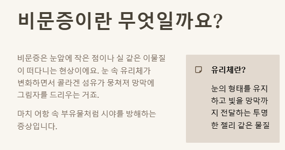 - ✅ 비문증은 눈 속 유리체 변화로 생기는 자연스러운 현상이에요.