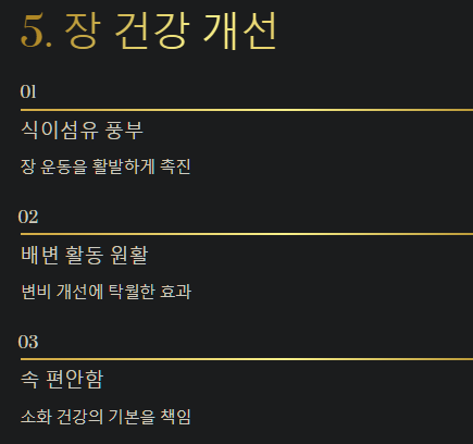 4. 식이섬유는 장 운동을 촉진하여 변비 개선에 효과적입니다.