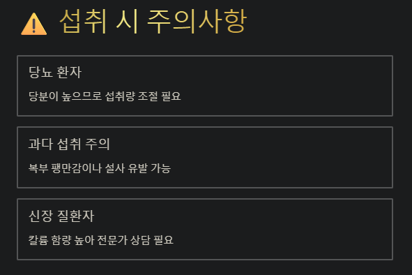 ⚠️ 주의: 늙은호박은 당분이 비교적 높은 편이므로, 당뇨병 환자분들은 섭취량을 조절하시는 것이 좋아요. 또한, 과다 섭취 시 식이섬유 때문에 일시적인 복부 팽만감이나 설사를 유발할 수도 있으니 적당량을 지켜주세요!