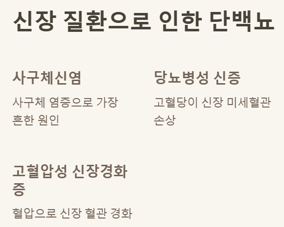 신장 기능의 핵심인 사구체나 세뇨관에 문제가 생기면 단백질 재흡수 기능이 저하되어 단백뇨가 나타납니다.