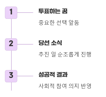 대통령 선거에 직접 참여하거나 당선 소식을 듣는 꿈은 당신의 사회적 참여 의지나 중요한 결정을 앞두고 있음을 나타냅니다. 자신이 투표하는 꿈은 어떤 중요한 선택을 해야 하는 상황에 놓여 있음을, 대통령이 당선되는 꿈은 당신이 추진하는 일이 순조롭게 진행되어 성공적인 결과를 가져올 것임을 암시해요. 특히 2026년에는 여러 중요한 사회적 이슈가 많으니, 이런 꿈은 더 의미심장하게 다가올 수 있겠죠.