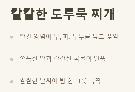 1. 칼칼한 맛이 일품, 도루묵 찌개/조림