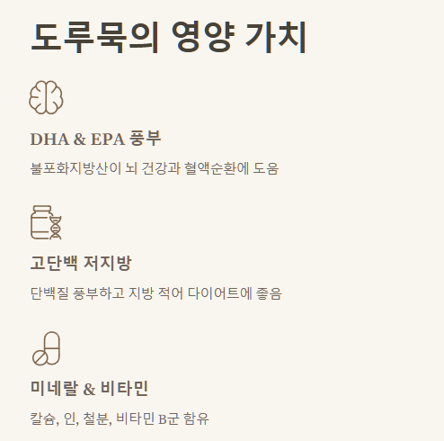 또한, 단백질이 풍부하고 지방 함량이 적어 다이어트 식품으로도 좋고요, 칼슘, 인, 철분 같은 미네랄과 비타민 B군도 함유하고 있어 전반적인 건강 유지에 기여한다고 합니다. 저도 겨울만 되면 도루묵 요리를 자주 해 먹는데, 왠지 모르게 기운이 나는 느낌이더라고요. 이 정도면 밥상에 자주 올려야 할 이유가 충분하죠?