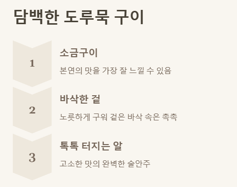 제철 도루묵을 가장 맛있게 즐기는 방법은 역시 다양한 요리로 맛보는 것이겠죠? 제가 개인적으로 좋아하는 요리들을 몇 가지 소개해 드릴게요.