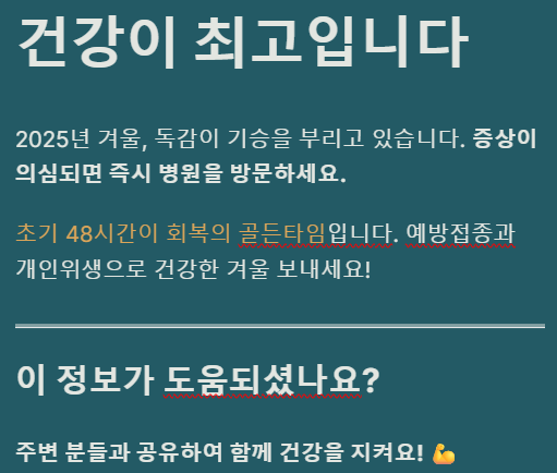 💡 꿀팁: 독감은 초기 48시간이 골든타임!