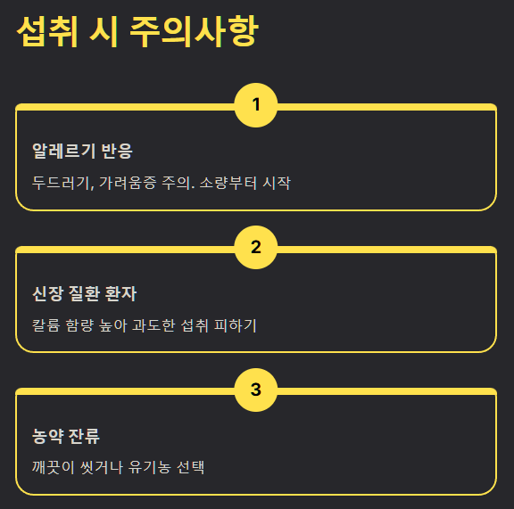 무엇보다 중요한 것은 '적당량'을 섭취하는 것이겠죠? 아무리 몸에 좋은 음식도 지나치면 탈이 날 수 있으니, 자신에게 맞는 양을 지켜 즐기는 것이 제일 현명한 방법이에요.