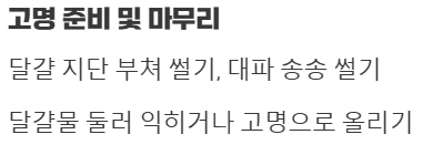 | 소금, 후추 | 약간 | 간 맞추기용 |