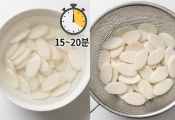 ✔️ 떡은 찬물에 15~20분 불려야 쫄깃한 식감을 유지할 수 있어요.