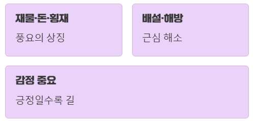 - 💰 황금 똥, 똥을 만지는 꿈은 특히 재물운이 극대화되는 최고 길몽입니다.