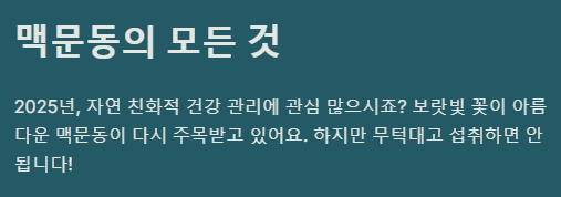 면역력은 2025년에도 여전히 가장 중요한 건강 키워드 중 하나죠. 맥문동은 면역 세포 활성을 돕는 다당류를 함유하고 있어, 외부 바이러스나 세균으로부터 우리 몸을 보호하는 데 기여할 수 있어요. 꾸준히 섭취하면 환절기 감기 예방에도 도움이 될 수 있다는 점, 정말 솔깃하죠?