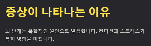 - 기억 상실, 극심한 두통, 시야 장애 등 다른 신체 증상이 동반될 때