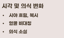 - 시야가 흐려지거나 복시 (사물이 두 개로 보임)