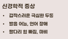 - 갑작스러운 극심한 두통