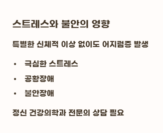 의외로 많은 분들이 스트레스나 불안감 때문에 어지럼증을 겪는다는 사실, 알고 계셨나요?
