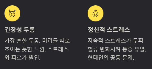 | 비약물 치료 | 물리 치료 (목 스트레칭, 자세 교정), 신경 차단술, 보톡스 주사 (만성 편두통), 스트레스 관리 (명상, 요가), 인지 행동 치료 등. |