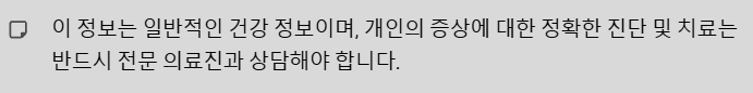 또 스트레스는 증상을 악화시키는 주요 요인이므로, 명상, 요가, 규칙적인 운동 등을 통해 스트레스를 관리하는 것이 중요합니다.