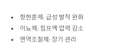 장기적으로는 림프액 조절을 돕는 약물이나 면역 조절제 등을 사용하기도 해요.