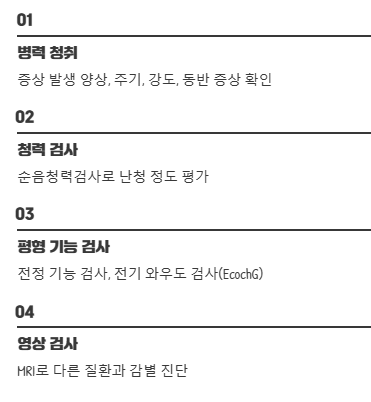 메니에르병은 증상만으로는 진단하기 어려운 경우가 많아요.