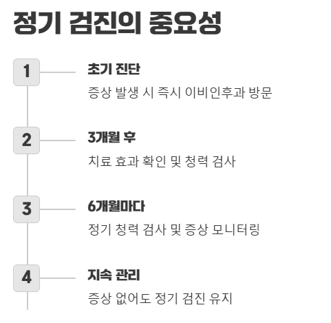 ⚠️ 주의: 위 증상 중 하나만 나타나더라도 방치하지 말고 이비인후과 전문의와 상담하는 것이 중요해요.